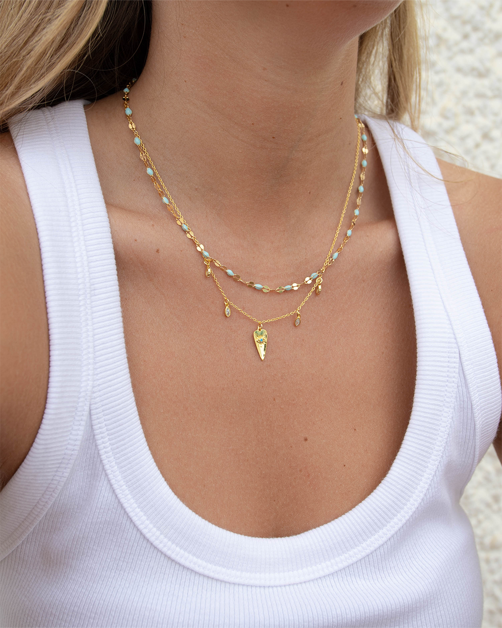 Colar em prata 925 com banho de ouro 18K, decorado com zircónias cúbicas para um brilho subtil e elegante. Produzido em Portugal com prata 100% reciclada, une design delicado e consciência sustentável. Ideal para uso diário ou para elevar qualquer look.